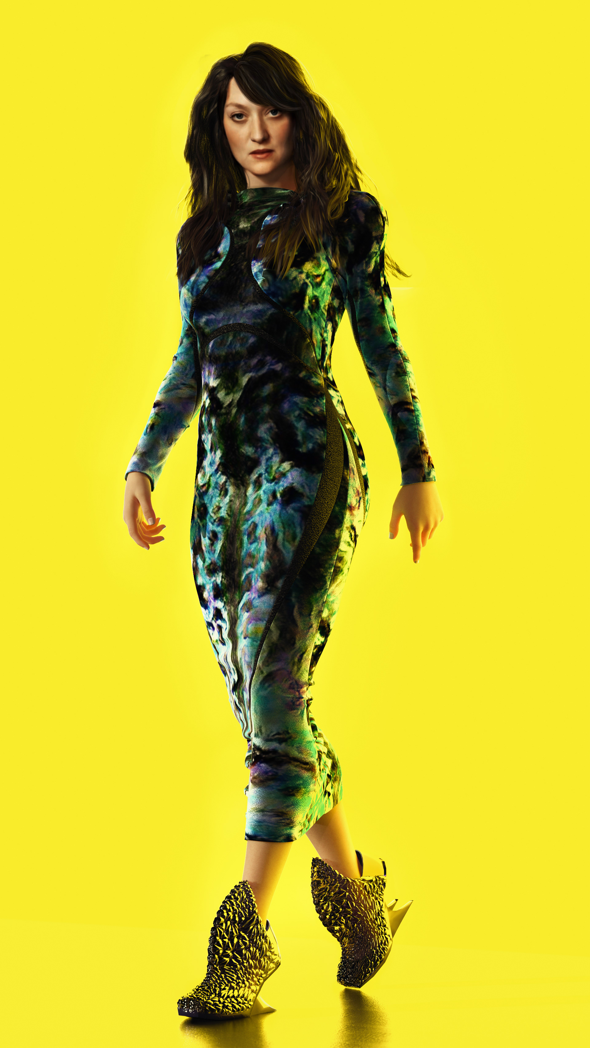 Kadine James is wearing EElytra base dress Fulcidax + Caddisfly Shoes Very Peri, all by EElytra.
